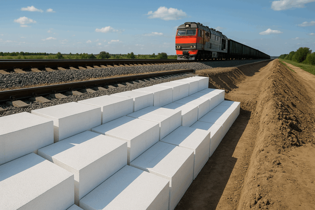 EPS Geofoam is the smart solution for new and existing railroad embankments—lightweight, stable, and engineered to perform. It reduces design risk, simplifies construction, and supports safe, efficient rail transport for decades to come.